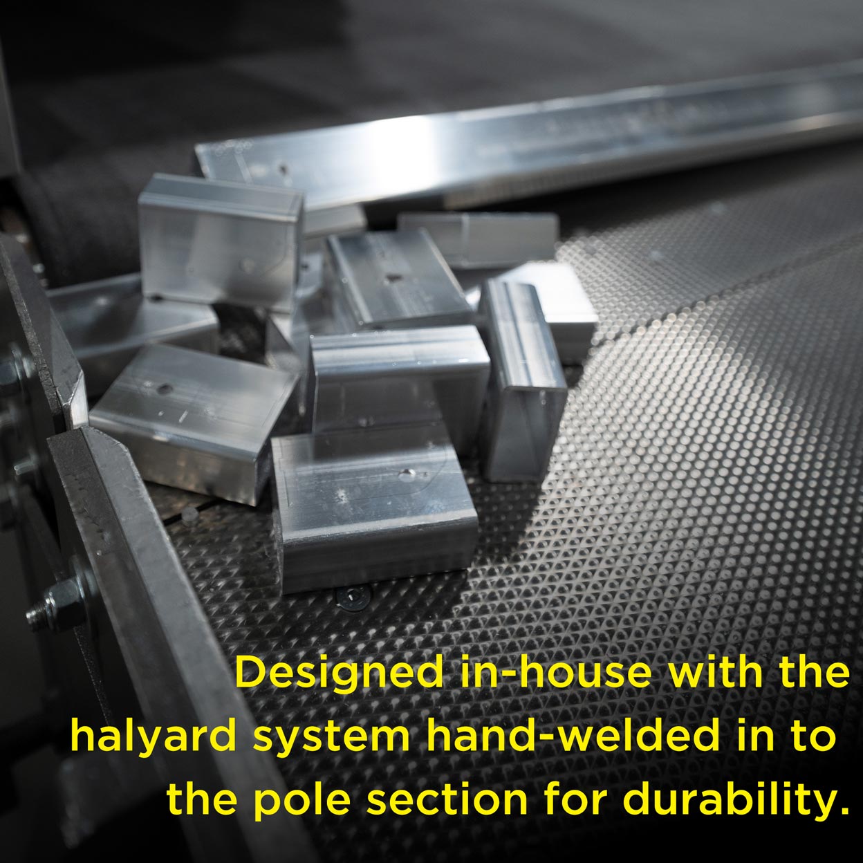 - Includes hand welded halyard & cleat with rope system
